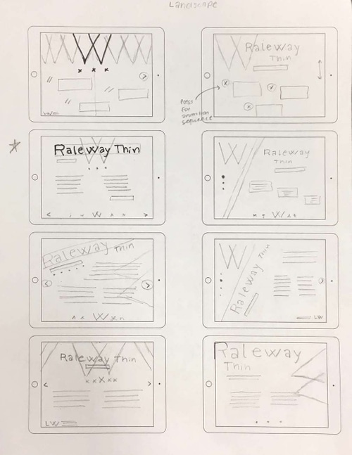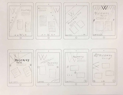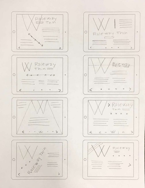 This letterform analysis serves as a prototype for an interactive A-to-Z typeface web app. It features the capital 'W' of Raleway Thin, designed by Matt McInerney and Impallari Type, and allows users to interactively view two letter analysis overlays.